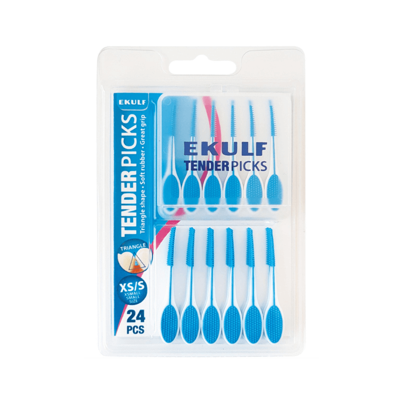 Olitpa sitten kotona, töissä tai maailmalla, EKULF TenderPicksit kulkevat helposti mukanasi. Pakkaus sisältää 24 hammastikkua ja kätevän matkarasian kuudelle tikulle – nappaa siis taskuun tai laukkuun ja freesaa suu missä vain. Valitse XS/S pienempiin ja L/M suurempiin hammasväleihin – jokaiselle välikölle löytyy sopiva tikku.