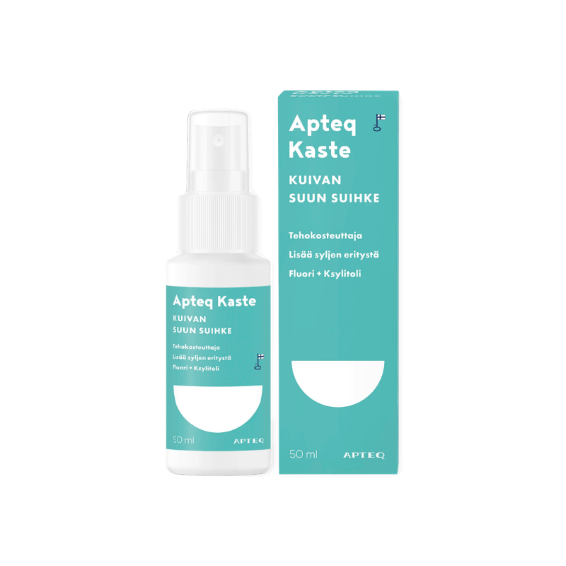 Kuvittele suussasi Saharan autiomaa, ei keidasta mailla halmeilla. Apteq Kaste muuttaa tilanteen omenahapon avulla, joka stimuloi sylkirauhasiasi tuottamaan omaa sylkeä pitkäkestoisesti – ei siis pelkkää pintakosteutta. Tämä on tutkitusti tehokkain tapa hoitaa kuivaa suuta. Suihkeen makuna on mieto minttu.